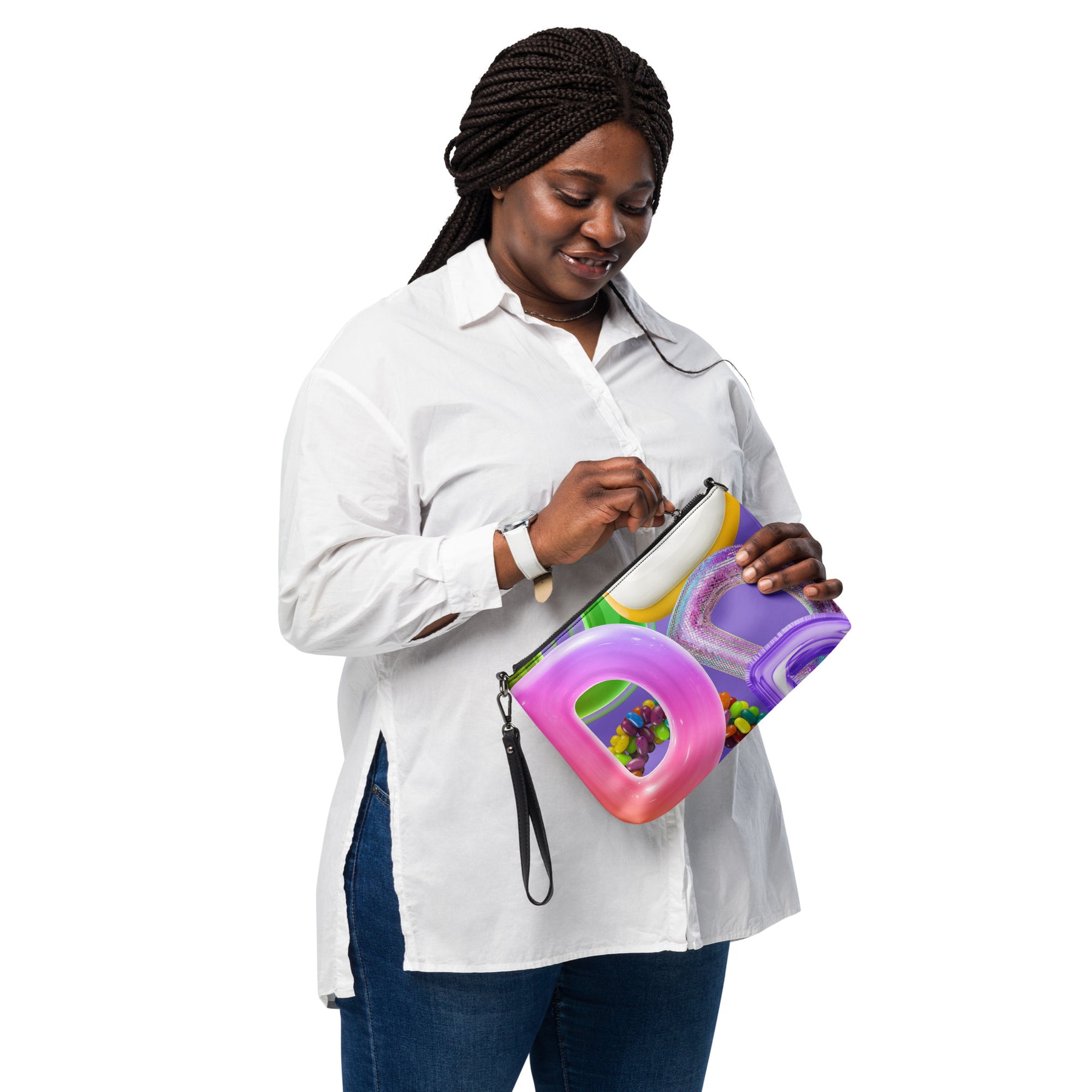 万能なクロスボディバッグで、スタイリッシュに、そして両手を自由に。上質なフェイクレザーを使用し、ダークグレーの金具が特徴です。ジップトップの開閉部と複数の内ポケットで、必需品を安全に、そして整理整頓して収納できます。取り外し可能なリストストラップとショルダーストラップで、デイタイムからナイトタイムまで、幅広いスタイルにアレンジできます。